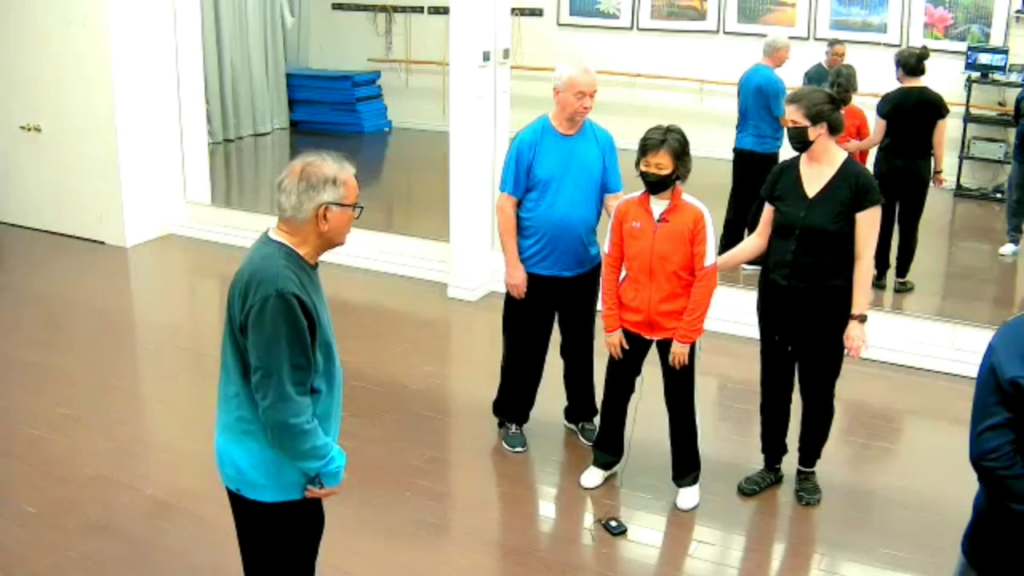 For beginners not used to practicing tai chi, the muscles on your feet may feel strained, do wear whatever shoe support that you need.